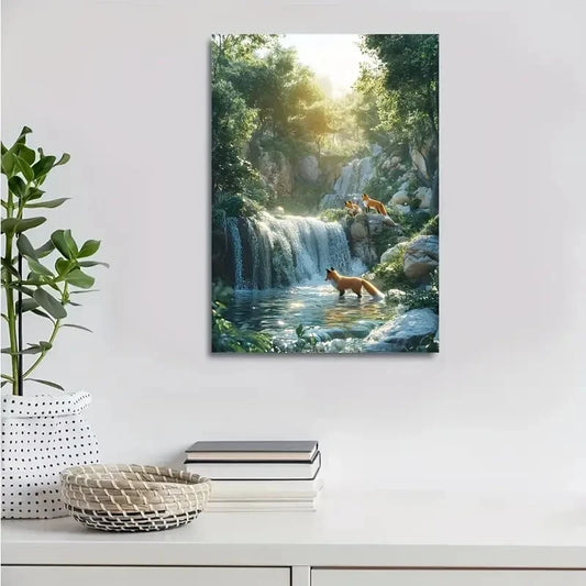 Enchanting Fox Splashing in Water Scene Painting 40x60cm Metal Print Ready to Hang