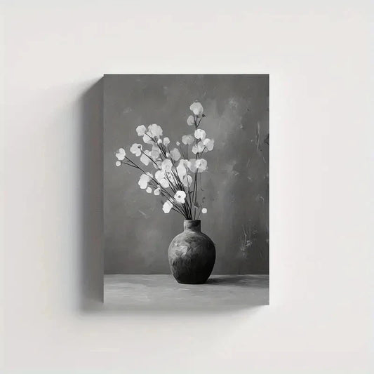 Black & White Floral Arrangement Painting 40x60cm Metal Print Ready to Hang