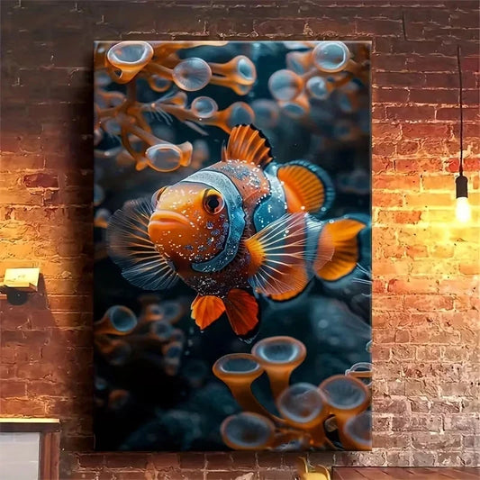 Vibrant Orange & Blue Fish Oil Painting Metal Print Ready to Hang