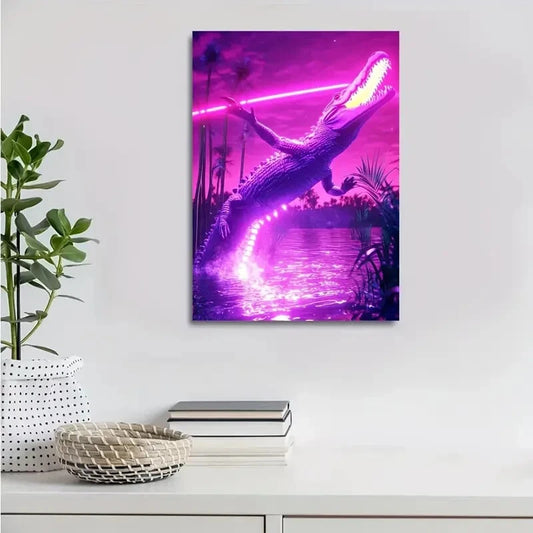 Beautiful Cyberpunk Crocodile Vivid Sunny Painting 40x60cm Metal Print Ready to Hang