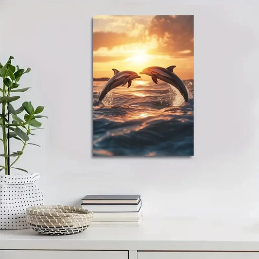 Beautiful Dolphin Sunset Scene with Glowing 40x60cm Metal Print Ready to Hang