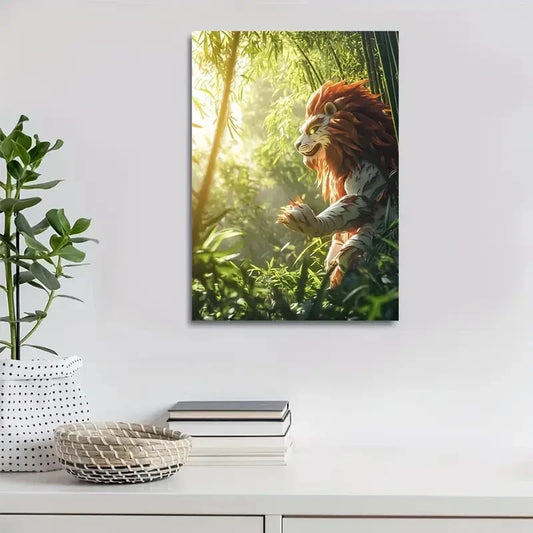 Lion Dancing Under The Sun in a Peaceful Painting 40x60cm Metal Print Ready to Hang