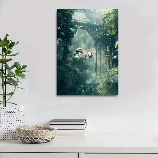 Steampunk Panda Mystical Bamboo Grove Painting 40x60cm Metal Print Ready to Hang