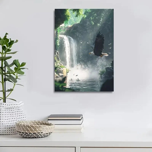Cyberpunk Eagle & Waterfall Scene Painting 40x60cm Metal Print Ready to Hang