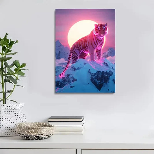 Realistic Scene of Tiger Dancing Under Sun 40x60cm Metal Print Ready to Hang