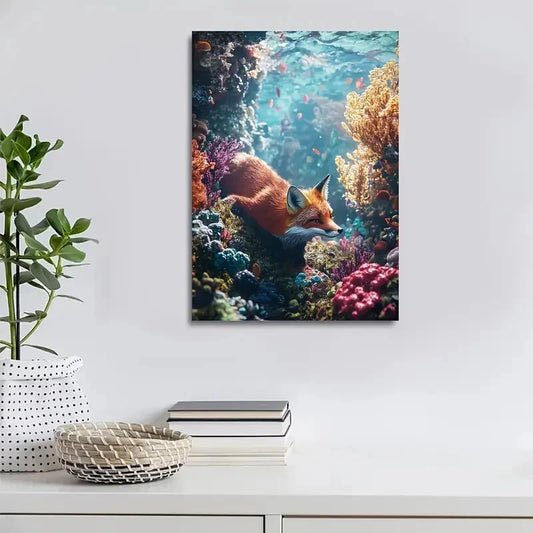 Vibrant Colors Scene of Fox Rolling Painting 40x60cm Metal Print Ready to Hang
