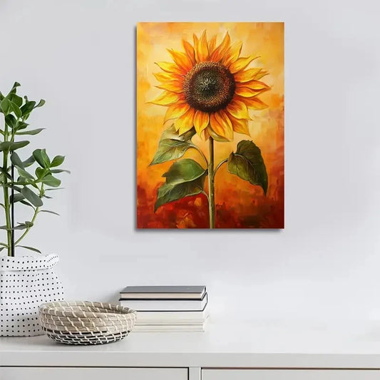 Vibrant Sunflower Orange & Yellow Tones Painting 40x60cm Metal Print Ready to Hang