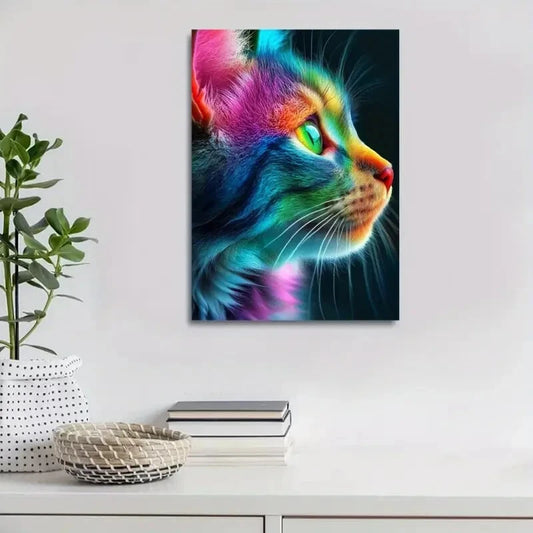 Contemporary Abstract Cat Colorful Cat Painting 40x60cm Metal Print Ready to Hang