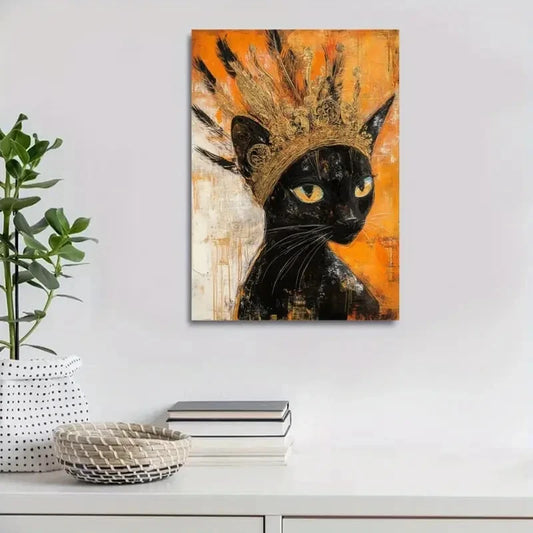 Beautiful Golden Headdress Cat Painting 40x60cm Metal Print Ready to Hang