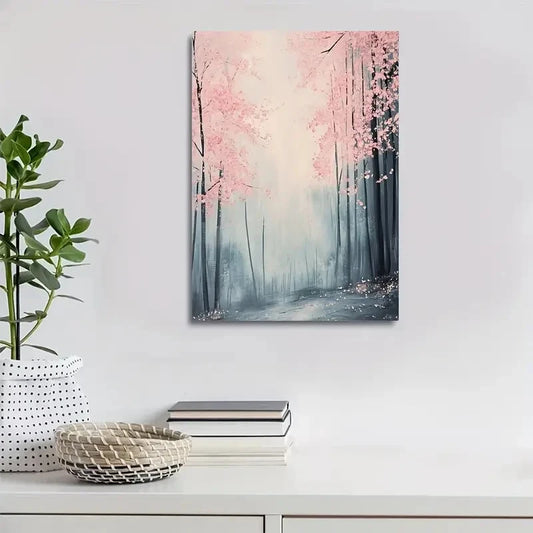 Cherry Blossom Forest Pink & Blue Hues Painting 40x60cm Metal Print Ready to Hang