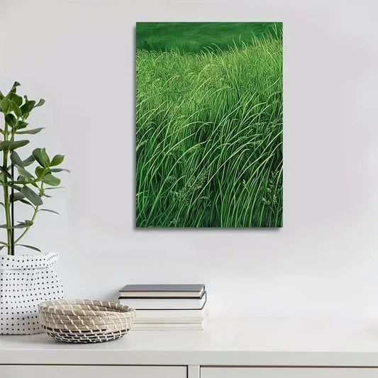 Emerald Green Thatch Grass Meadow Painting 40x60cm Metal Print Ready to Hang