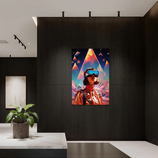 Person Wearing Futuristic High Tech VR Glasses 60x90cm Metal Print Ready to Hang