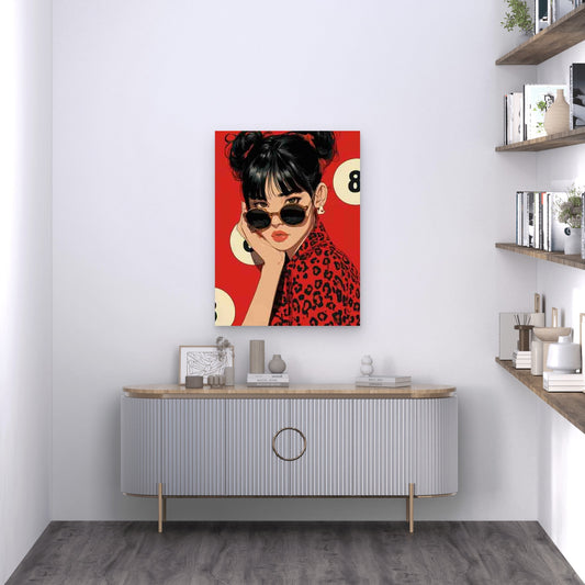 Featuring a Lucky 8 Ball with a Red Leopard Print 60x90cm Metal Print Ready to Hang