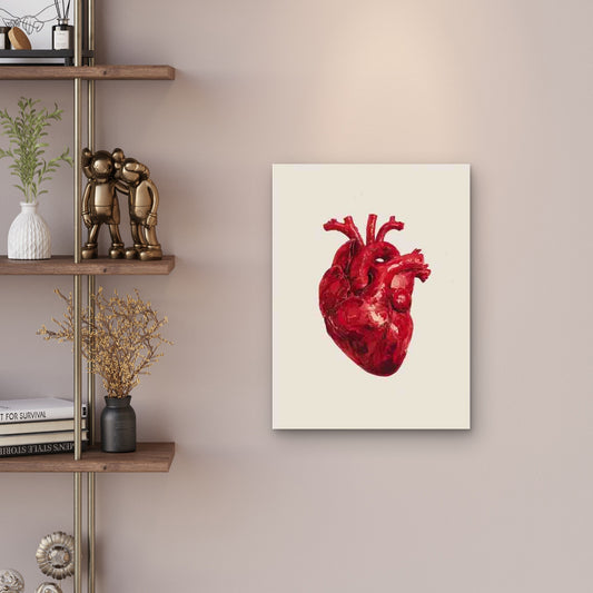 Red Heart in Beige Background 60x90cm Metal Print Ready to Hang