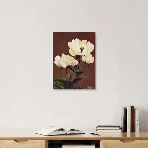 Beautiful Vintage White Peonies Botanical 60x90cm Metal Print Ready to Hang