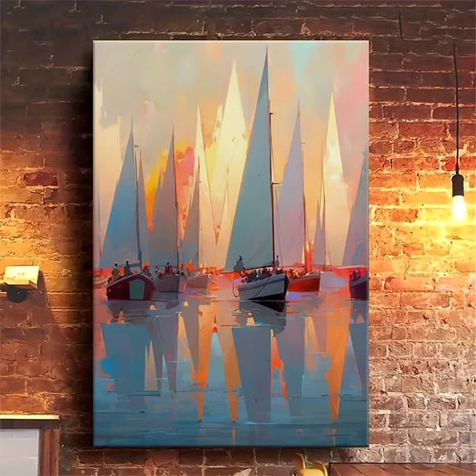 Sailboats at Sunset 60x90cm Metal Print Ready to Hang