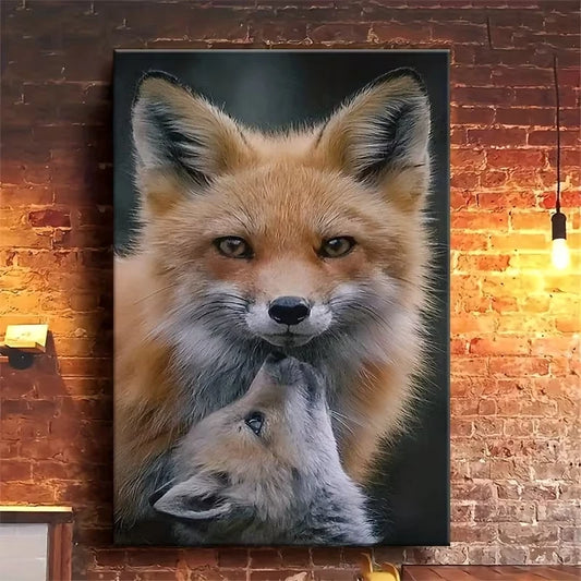 Fox And Cub in Close Bond 60x90cm Metal Print Ready to Hang