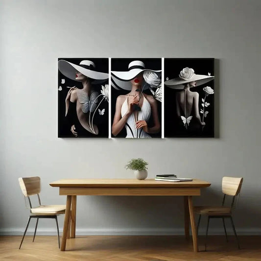 3pcs three female minimalist art hat oil painting Metal Print Ready to Hang Art
