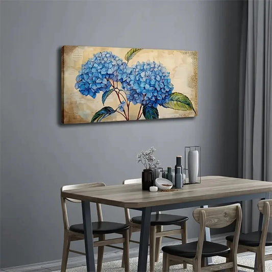 Minimalist Blue Hydrangea Wall Art Canvas Office Home Room Framed 120x60cm