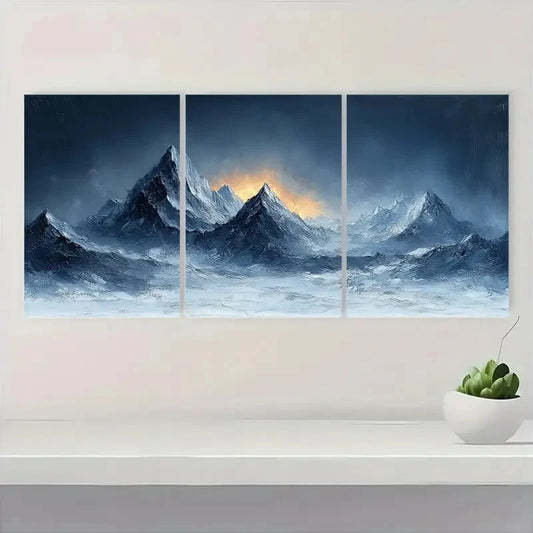 3pcs Blue Desert Design Minimalist Metal Print Ready to Hang Art
