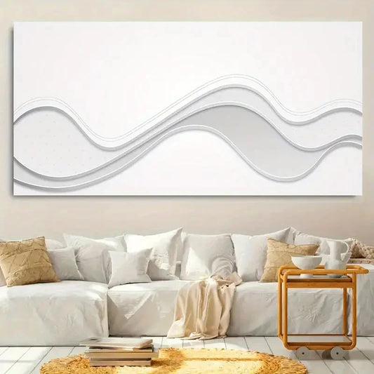 Modern Minimalist White Wave Wall Art Canvas Office Home Room Framed 120x60cm