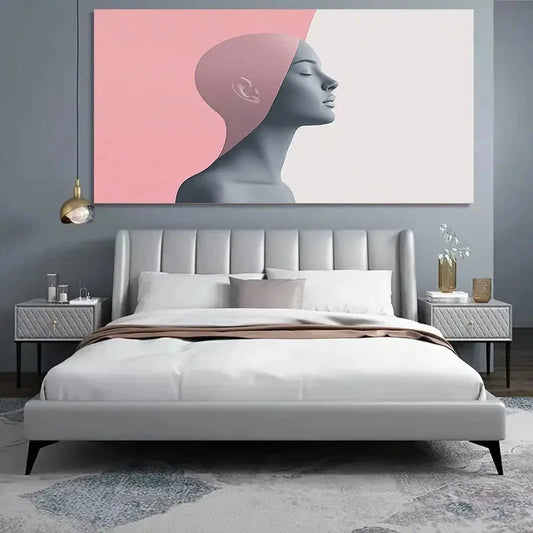 Minimalist Woman Profile Pink Wall Art Canvas Office Home Room Framed 120x60cm