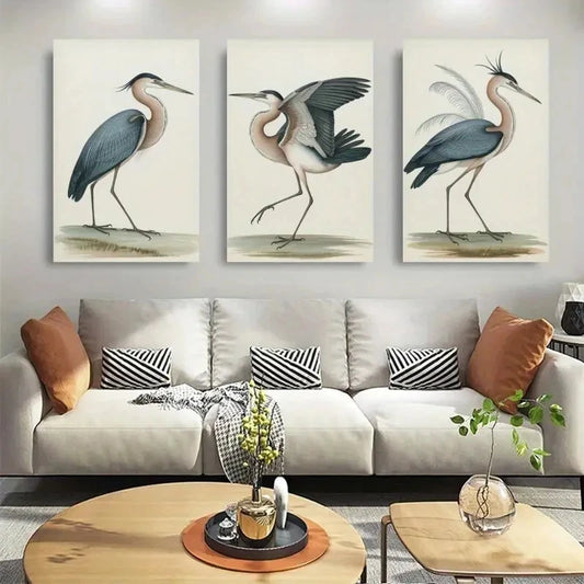 3pcs Heron Minimalist Artwork Wall Art Set Canvas Framed 40x60cm - High Quality Print 100% Australian Made Wall Canvas Ready to Hang
