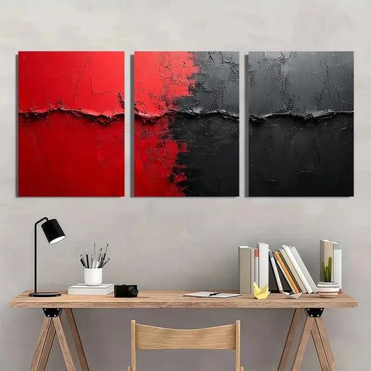 3pcs Black & Red, Minimalist Design Wall Art Set Canvas Framed 60x90cm - High Quality Print 100% Australian Made Wall Canvas Ready to Hang