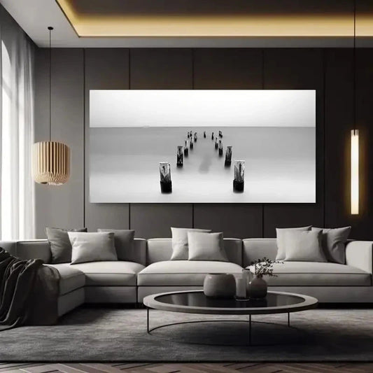 Black And White Minimalist Sea Wall Art Canvas Office Home Room Framed 120x60cm