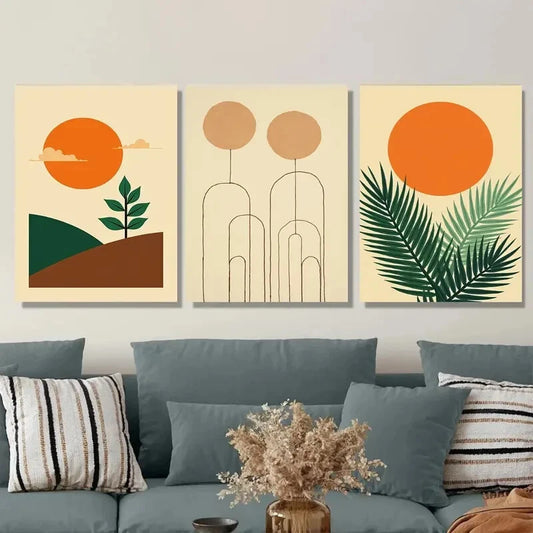 3pcs Modern Abstract Minimalist Sunset and Plant Metal Print Ready to Hang Art
