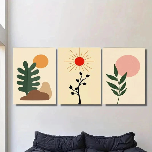 3pcs Minimalist & Bohemian Designs Retro Abstract Metal Print Ready to Hang Art