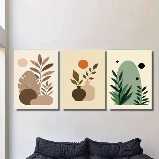 3pcs Botanical Minimalist Style with Neutral Metal Print Ready to Hang Art