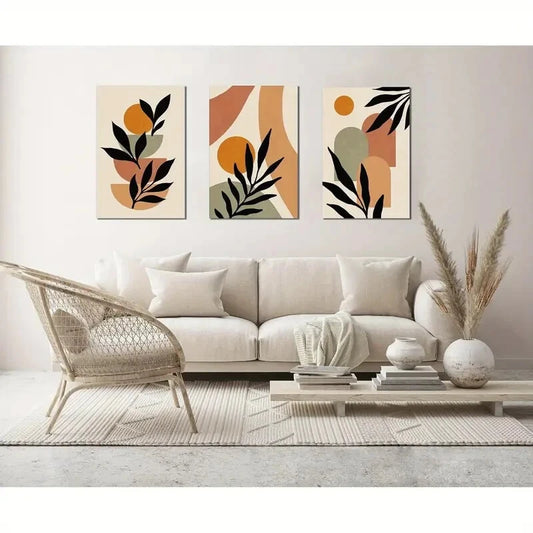 3pcs Minimalist Bohemian Leaf & Sunset Metal Print Ready to Hang Art