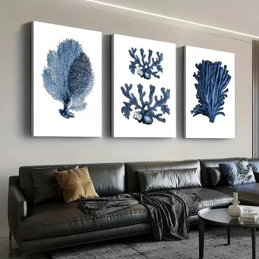 3pcs Minimalist Modern Fashion Underwater Coral Wall Art Set Canvas Framed 50x70cm - High Quality Print 100% Australian Made Wall Canvas Ready to Hang