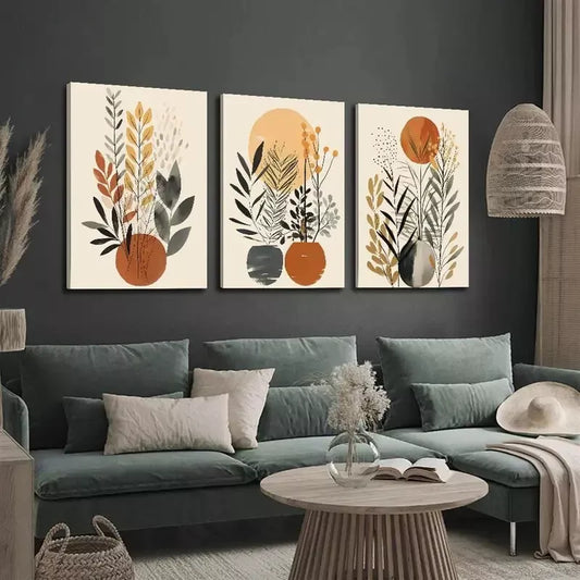 3pcs Retro Minimalist Bohemian Botanical Wall Art Set Canvas Framed 50x70cm - High Quality Print 100% Australian Made Wall Canvas Ready to Hang