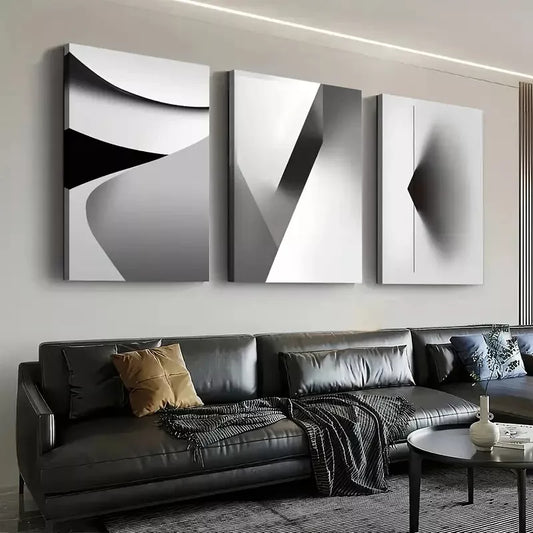 3pcs Minimalist Modern Black And White Abstract Wall Art Set Canvas Framed 50x70cm - High Quality Print 100% Australian Made Wall Canvas Ready to Hang