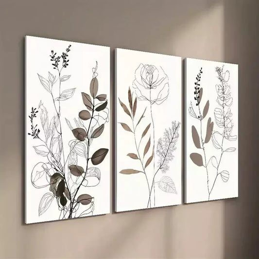 3pcs Minimalist Botanical Line Wall Art Set Canvas Framed 50x70cm - High Quality Print 100% Australian Made Wall Canvas Ready to Hang