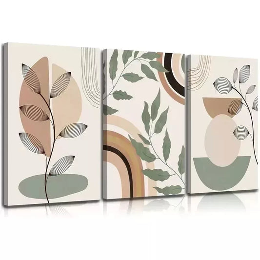 3pcs Modern Minimalist Green Plant & Geometric Wall Art Set Canvas Framed 50x70cm - High Quality Print 100% Australian Made Wall Canvas Ready to Hang