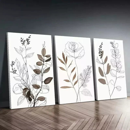 3pcs Minimalist Floral Pattern Wall Art Set Canvas Framed 50x70cm - High Quality Print 100% Australian Made Wall Canvas Ready to Hang