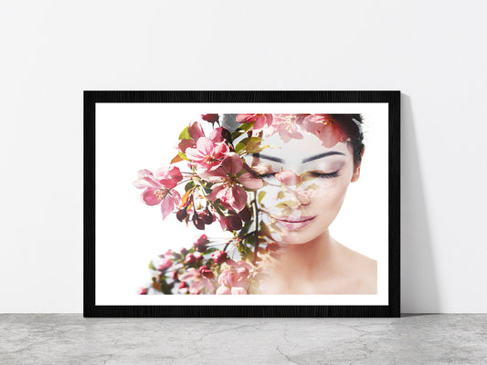 Girl With Flowers Show Nature Glass Framed Wall Art, Ready to Hang Quality Print