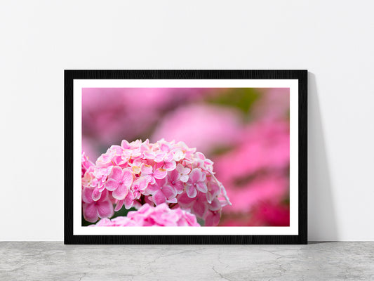 Hydrangea Flower In The Garden Glass Framed Wall Art, Ready to Hang Quality Print