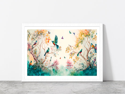 Birds & Butterflies Garden Paint Glass Framed Wall Art, Ready to Hang Quality Print