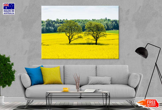 Trees on Yellow Flower Field Scenery Photograph Print 100% Australian Made