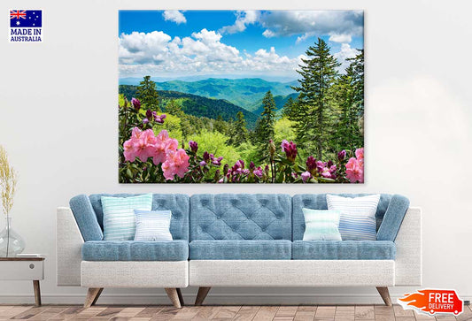 Square Canvas Pink Rhododendron Flowers & Mountains High Quality Print 100% Australian Made