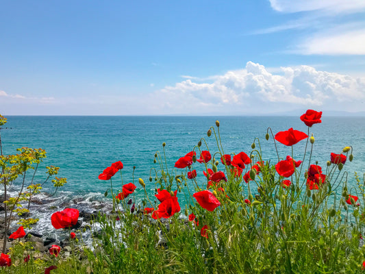 Flower Field Near Sea Photograph Home Decor Premium Quality Poster Print Choose Your Sizes
