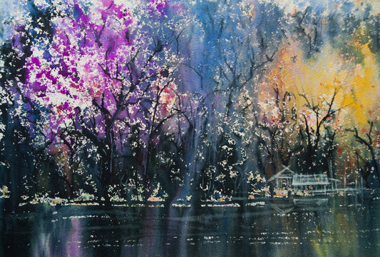 Blossom Trees Along River Paint Home Decor Premium Quality Poster Print Choose Your Sizes