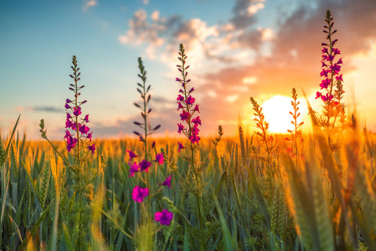 Flower Field Sunset Scenery View Print 100% Australian Made