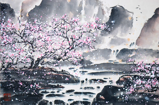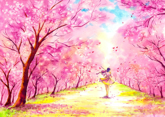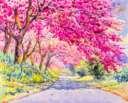 Pink Flower Trees & Road Painting Home Decor Premium Quality Poster Print Choose Your Sizes