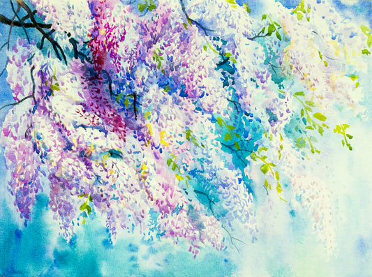 Wisteria Flowers Watercolor Painting Print 100% Australian Made