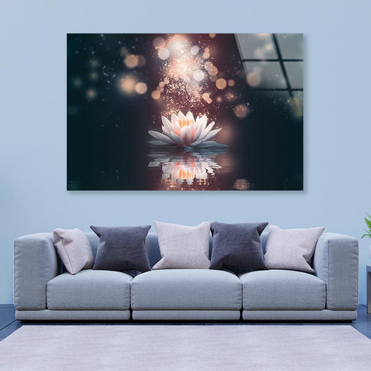 White Flower Floating in The Water with Sparkles Acrylic Glass Print Tempered Glass Wall Art 100% Made in Australia Ready to Hang